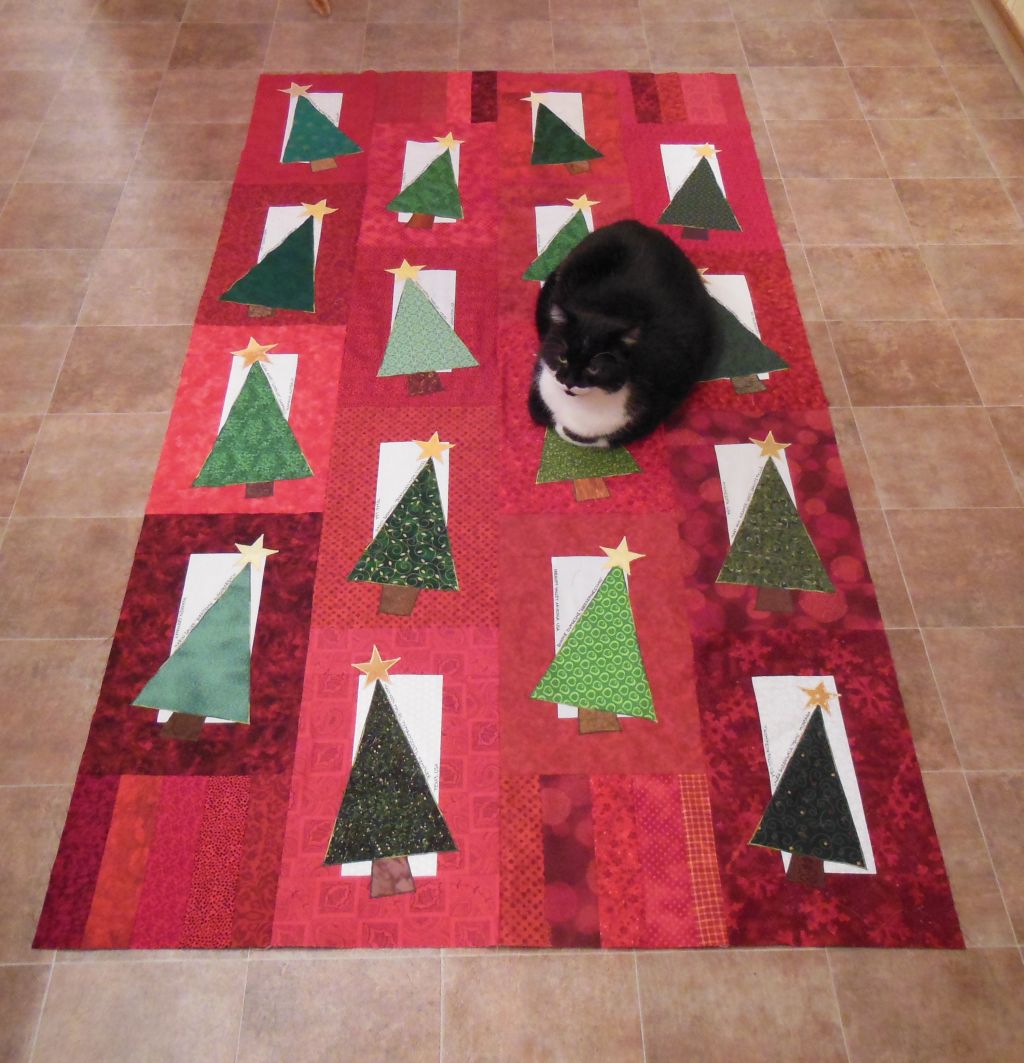 The last week I kept on working on my x-mas tree quilt. I laid out the blocks and strips to see what the top will look like....... and I must admit, that I already looove it